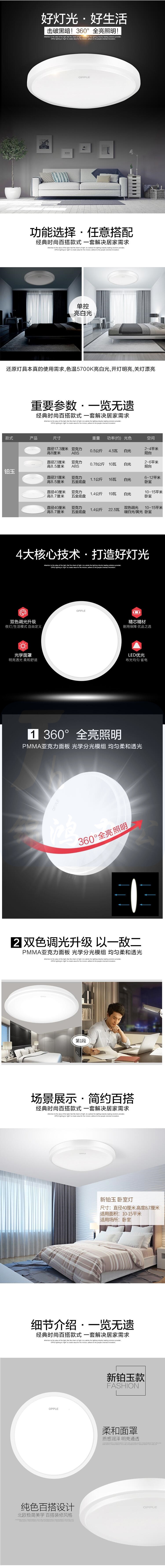 欧普照明(OPPLE)22.5瓦双色led双色调光卧室灯吸顶灯 新铂玉 直径40cm