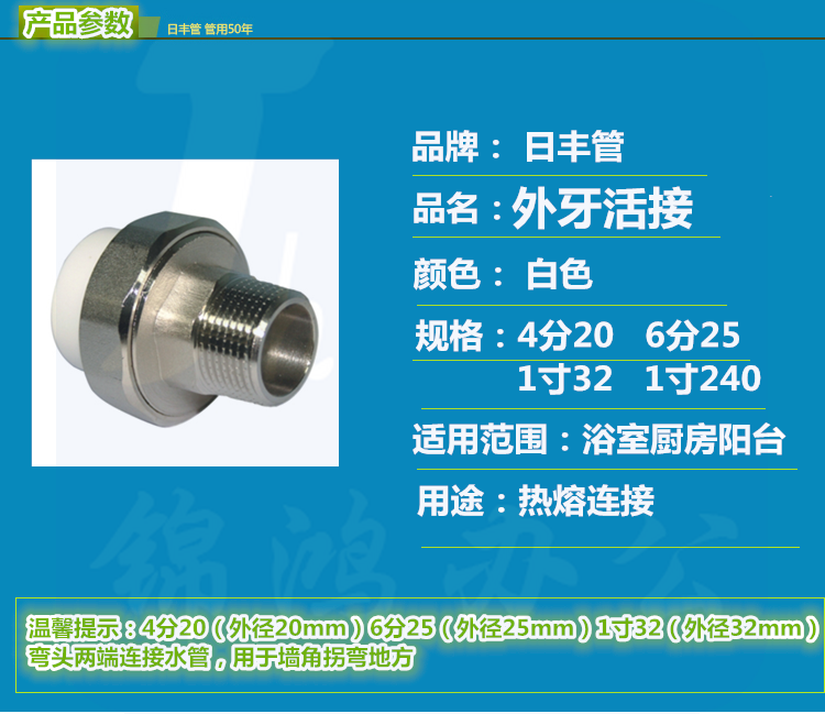 日丰PPR外牙活接 日丰水管配件 6分 25*6分 货号:YC