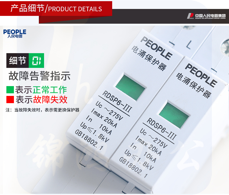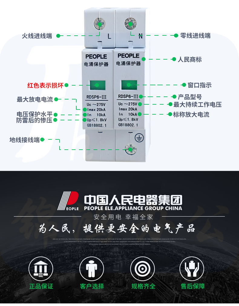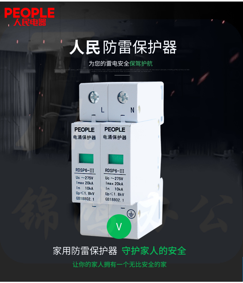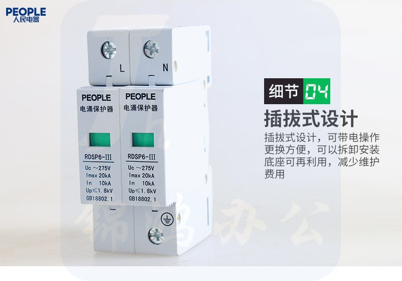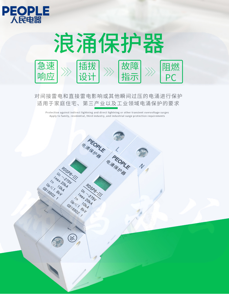人民电器 浪涌保护器 RDSP6-20KA/2P/Uc275防雷器220V 避雷器