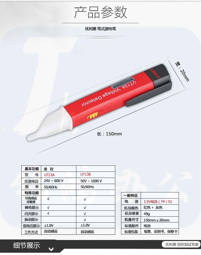 优利德多功能数显感应测电笔试电笔UT13A