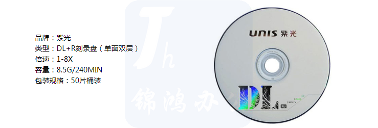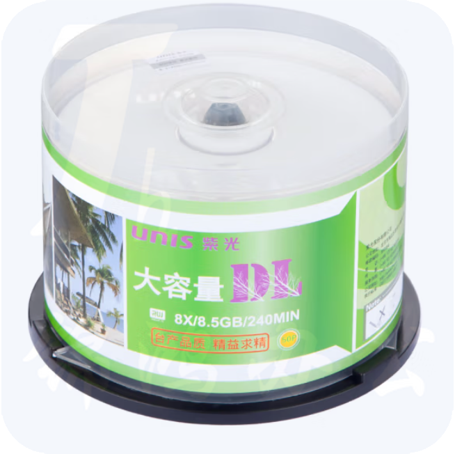 紫光(UNIS)DVD+R DL光盘/刻录盘 8速8.5G 单面双层 桶装50片 空白光盘