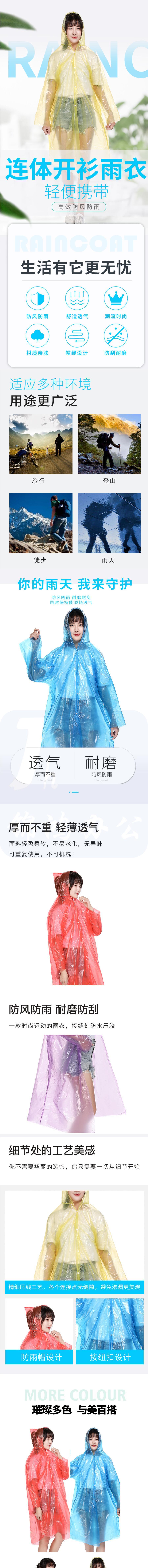 谋福 172成人四合扣雨衣PE连体开衫雨衣10件/包 单件价格