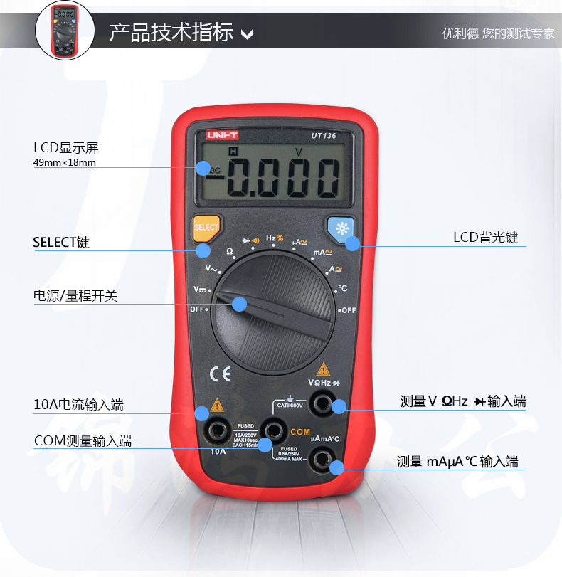 优利德(UNI-T)自动量程万用表UT136B