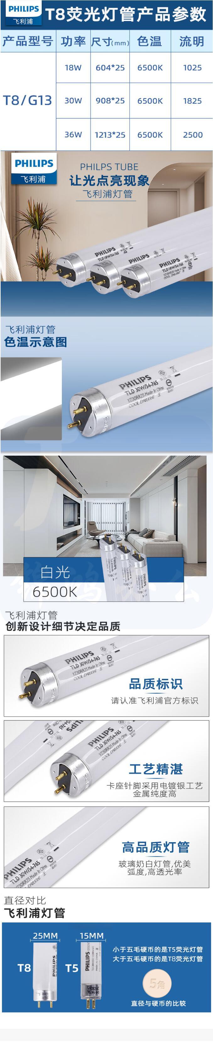 飞利浦T8荧光灯管36W 1.2米日光灯管直管老式白光6500K