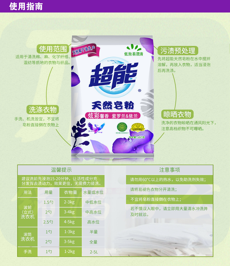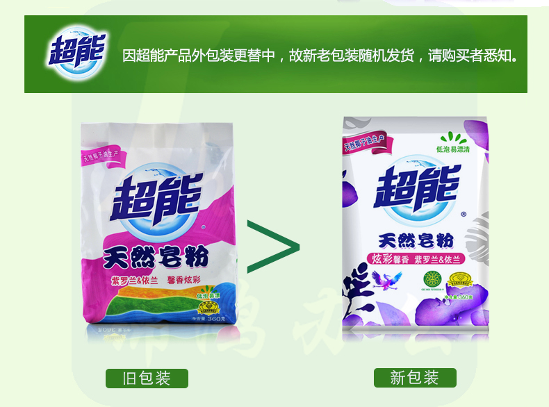 超能(CHAONENG)天然皂粉360g 18袋/件