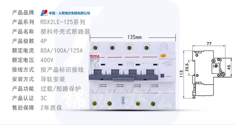 人民电器 RDX2LE-4P100A4L 拼装 漏电断路器