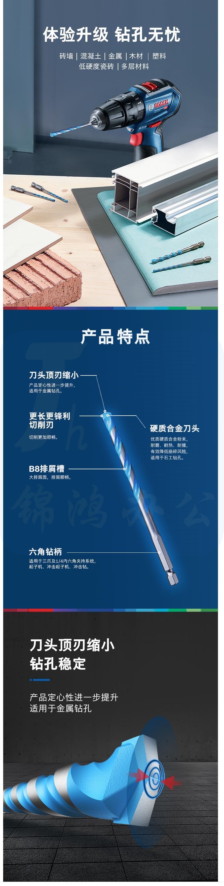 博世瓷砖钻头 盒装(直径6mm、直径8mm、直径10mm) 货号:WY
