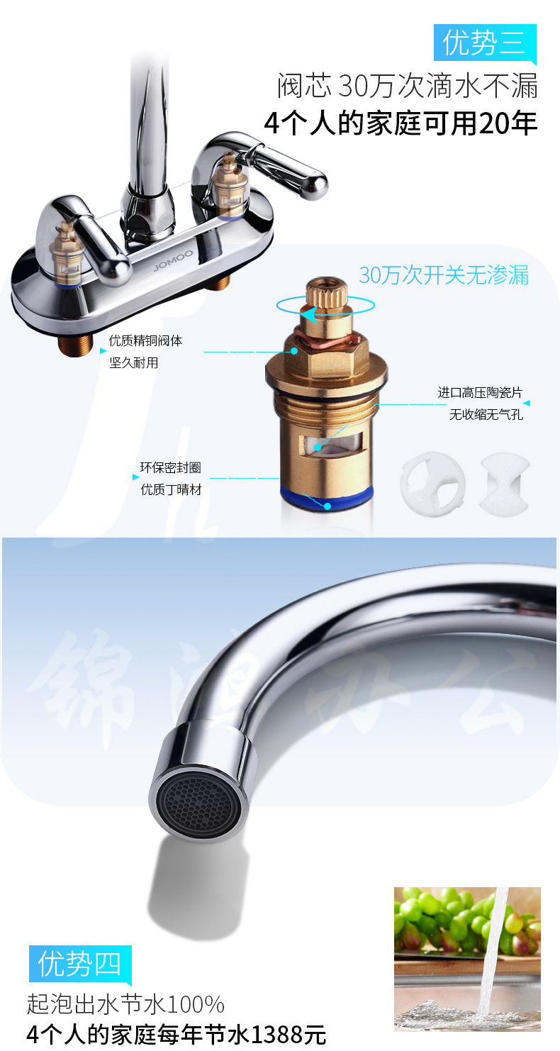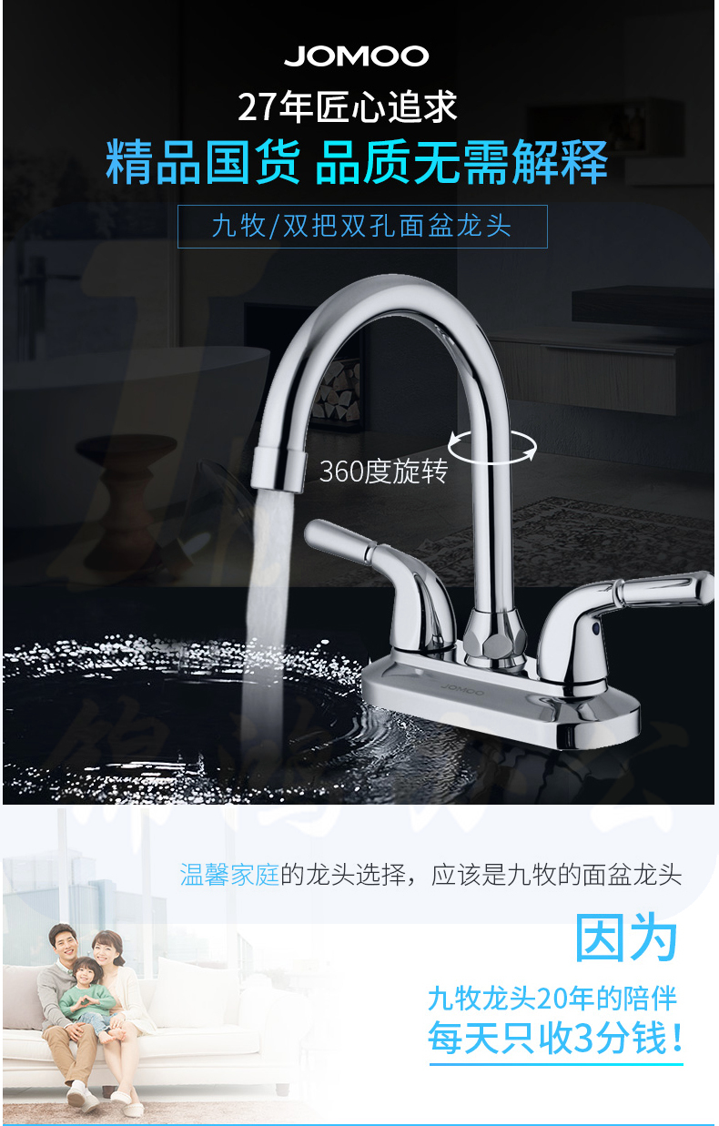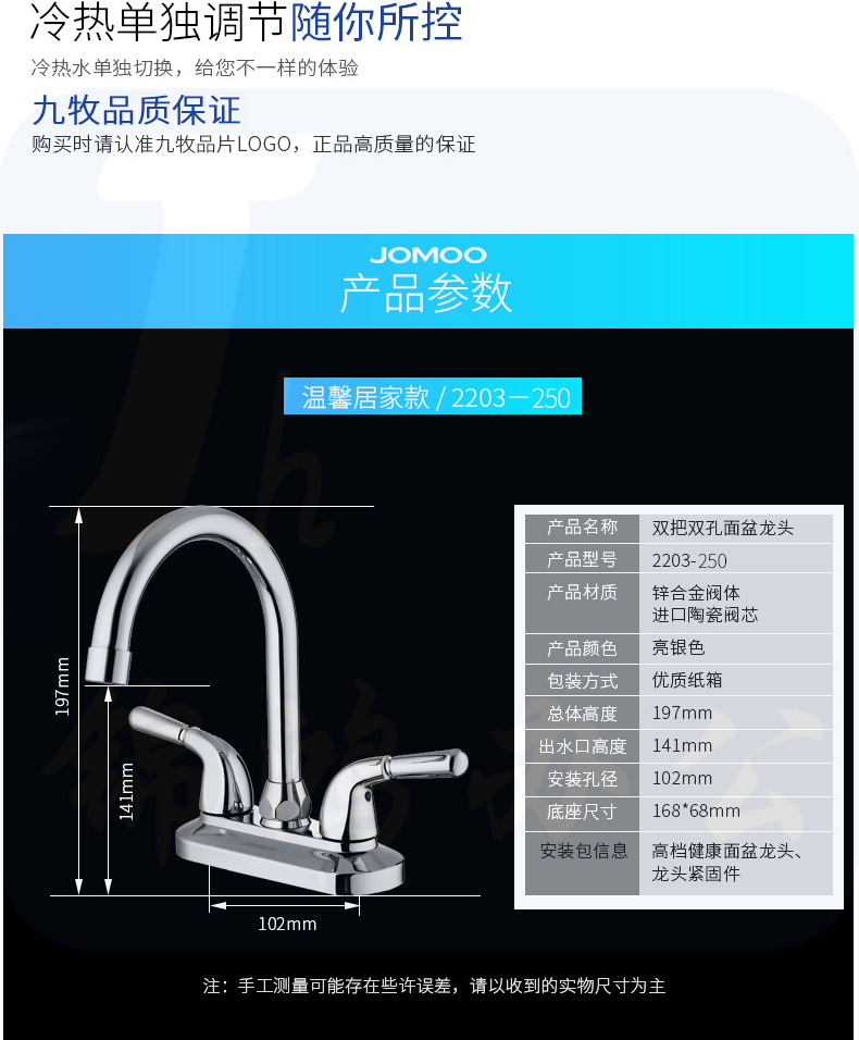 九牧2203-250水龙头浴室双把双孔面盆龙头台盆洗脸盆冷热龙头