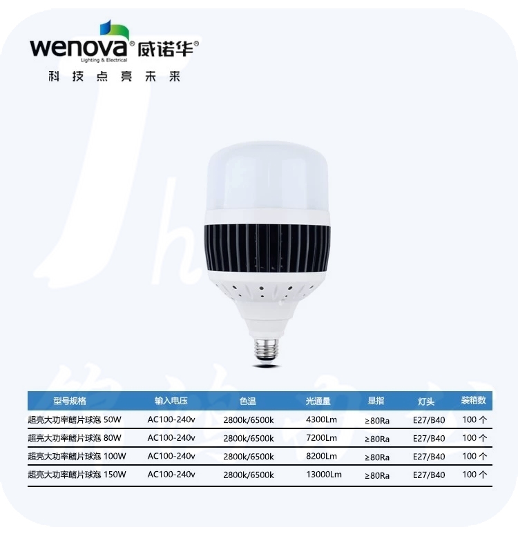 威诺华100瓦LED大功率球泡大功率灯泡螺口白光