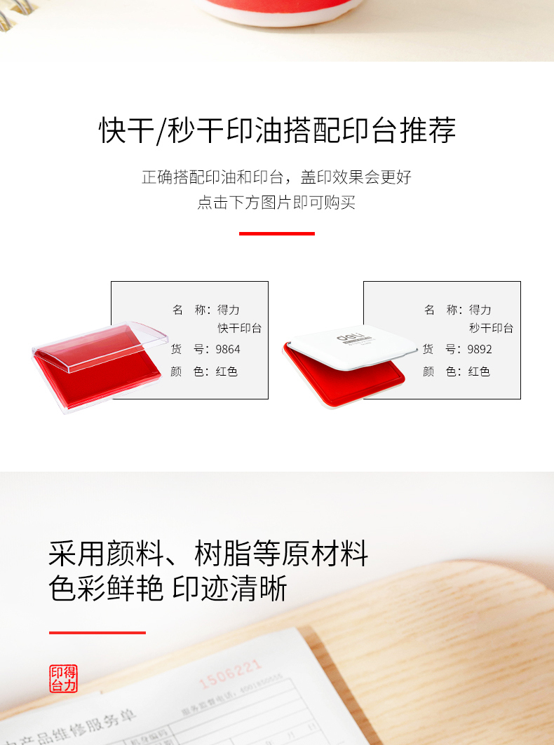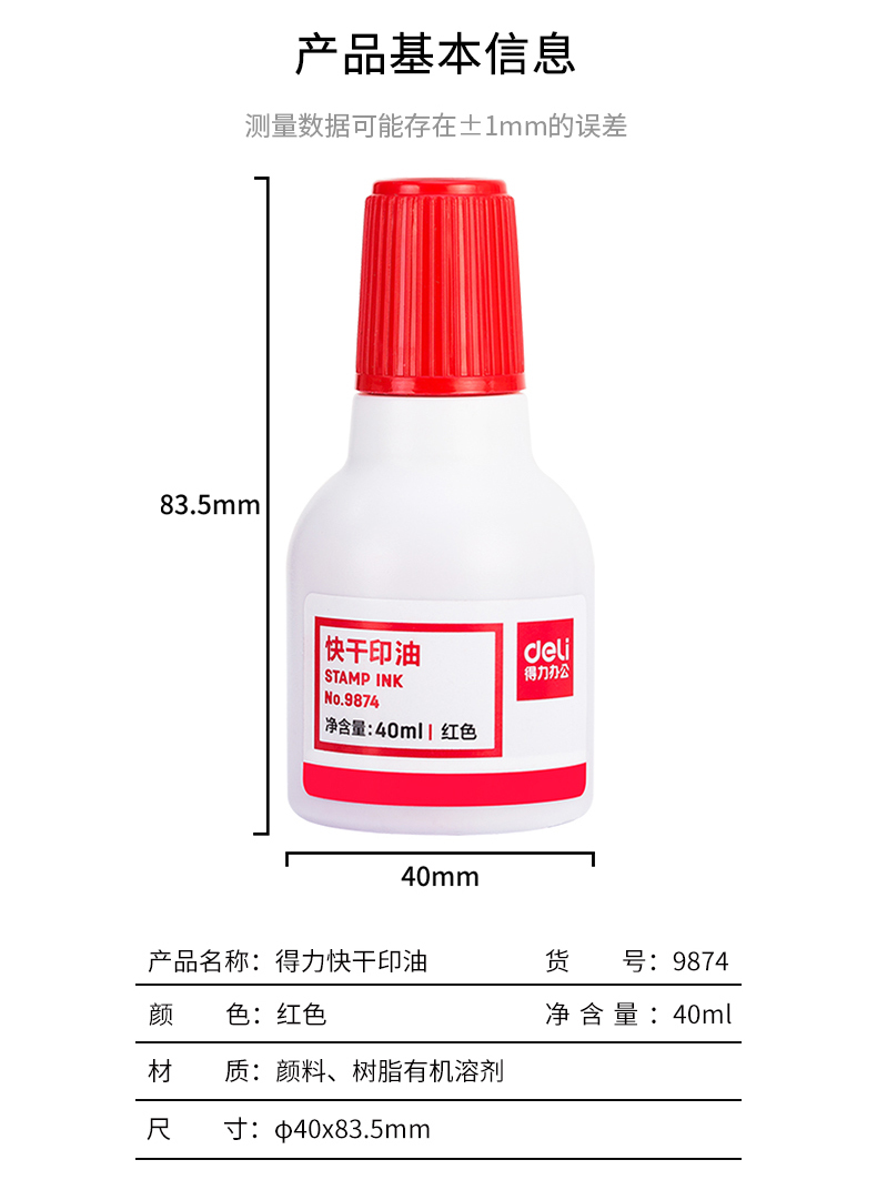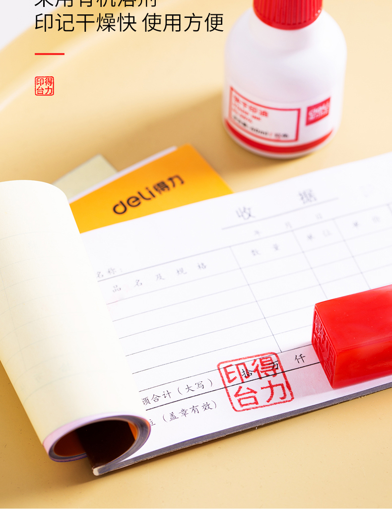 得力红色印油9874【油性】 快干大容量清洁印泥油印章墨水印泥水速干印台油红发票章刻章盖章油补充液大瓶