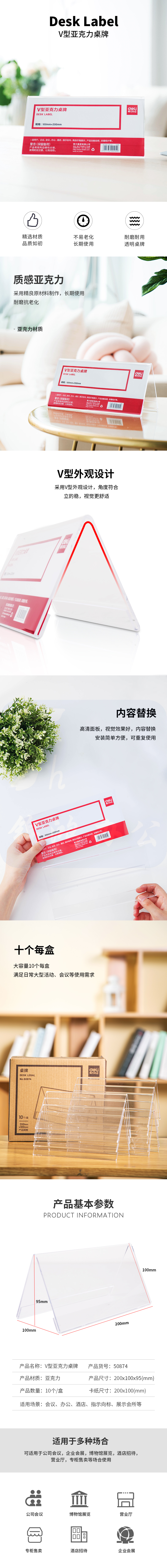 得力50874 V型桌牌 200*100mm 10个装:盒