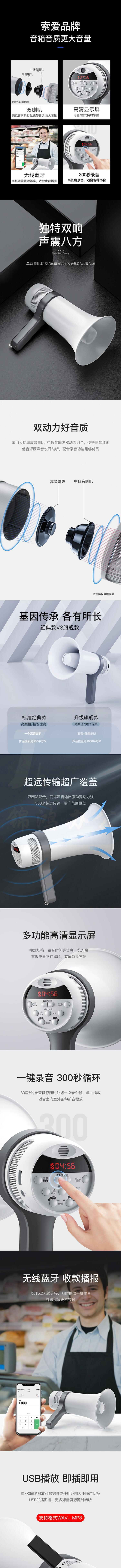 索爱(soaiy)手持高音喊话器 录音喇叭便携式 蓝牙扩音器S-800