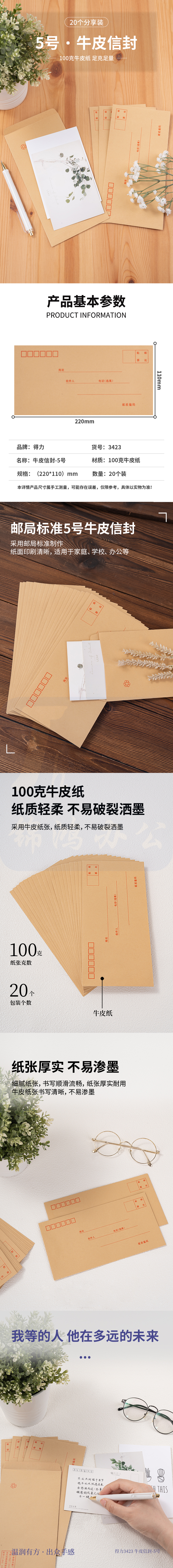 得力3423牛皮信封 5号信封 编号182