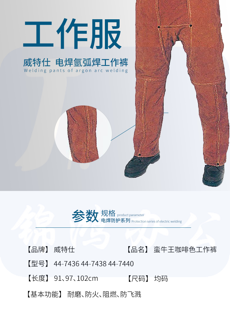 威特仕 / WELDAS 44-7436 蛮牛王 牛皮电焊专用工作裤91厘米长单前幅敞开式电焊裤 1条