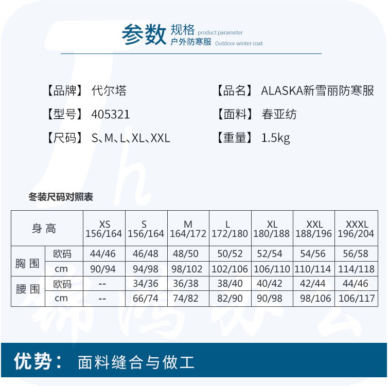 代尔塔 405321 时尚春亚纺二合一防寒服PVC涂层新雪丽保暖填充物