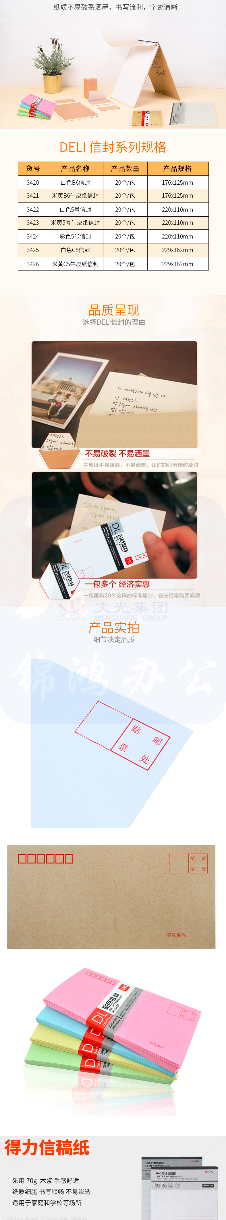 得力3423牛皮纸信封(220*110mm)-5号(20个/包)