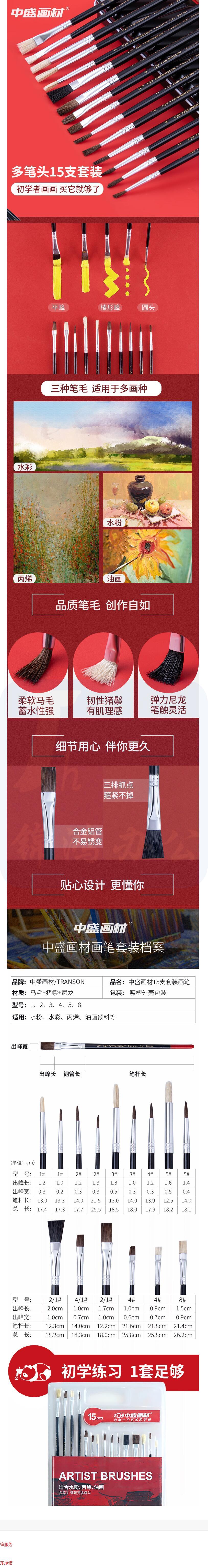 中盛画材 水粉画笔套装丙烯油画水彩颜料画笔 15支套装