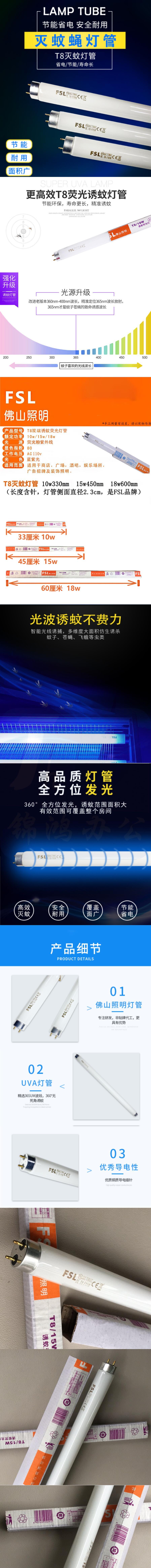 佛山照明 T8诱蚊灯管10W灭蚊蓝光直管荧光灯灭蝇灯 长0.34米