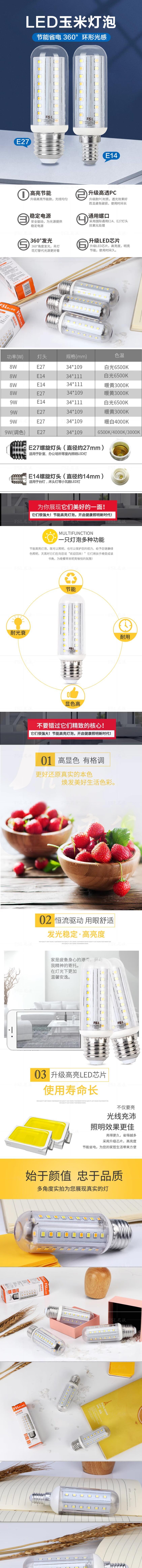 佛山照明 led灯泡玉米灯9W白光6500K e27螺口节能灯
