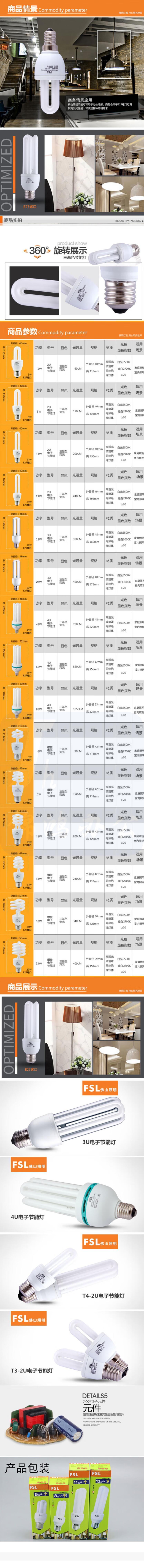 佛山照明 5W节能灯泡U型三基色荧光E27螺口E27白光6500K