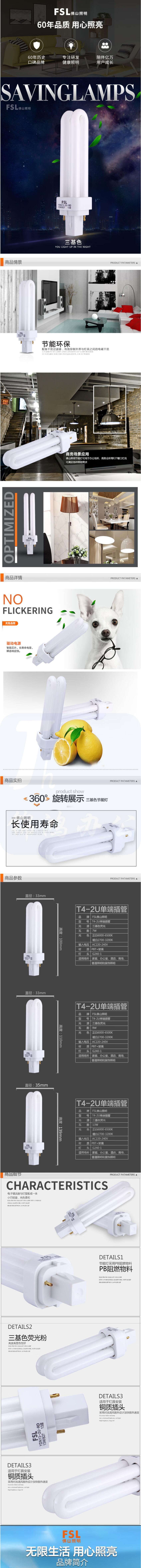 佛山照明 13W插拔节能灯 U型插拔灯管T4-2U节能灯泡2针白光
