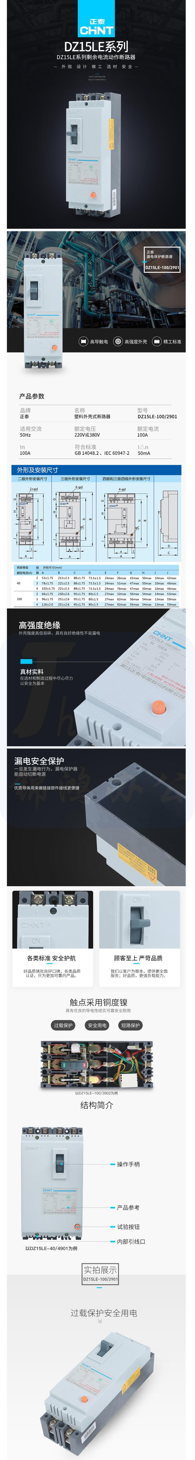 正泰 DZ15LE-100/4901-100A 塑壳断路器 货号:YC